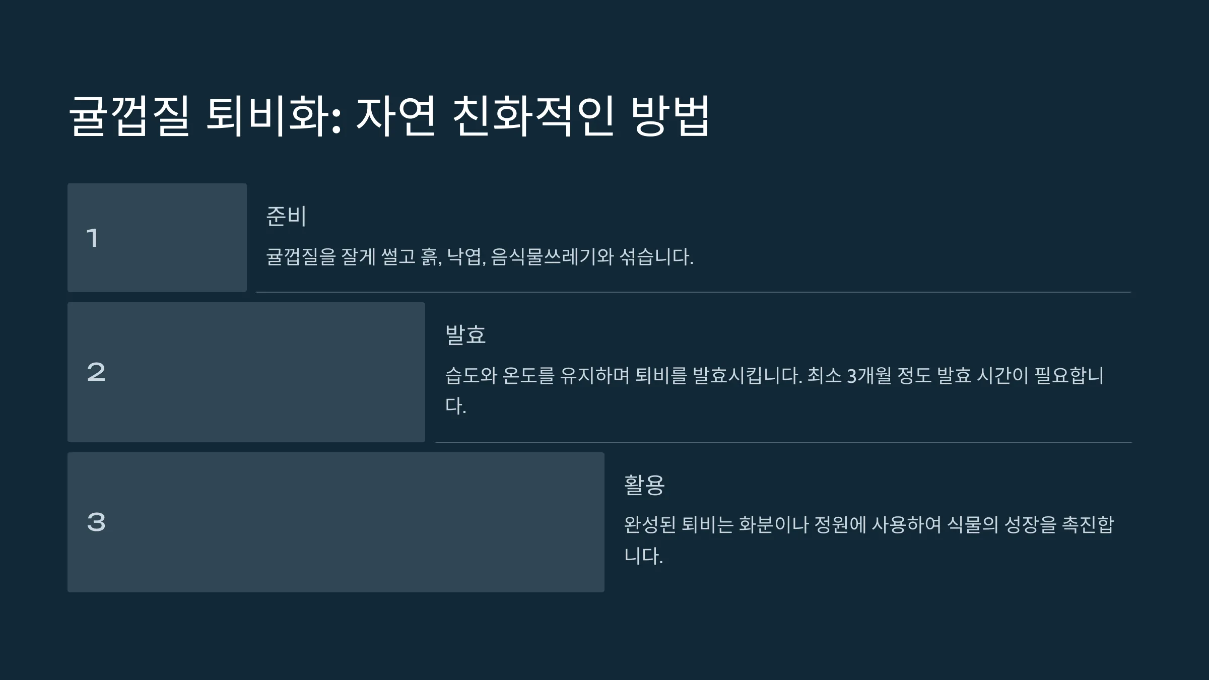 퇴비를 만들 때는 항상 충분한 통풍을 유지하는 것이 중요해요. 귤껍질을 포함한 재료들이 산소와 접촉하며 분해되는 것이 퇴비화 과정의 핵심이거든요. 이런 작은 실천이 우리가 살고 있는 환경에 큰 차이를 만들어줄 수 있답니다.