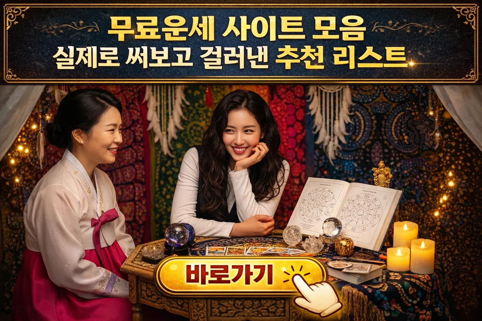 [면책조항] 본 글은 정보 제공을 위한 콘텐츠이며, 제시된 무료운세 사이트와 운세 결과는 법적, 의학적, 재정적 조언을 대체하지 않아요. 운세는 참고용으로만 활용해주세요. 사이트 이용 시 개인정보 보호에 유의하시길 바랍니다.