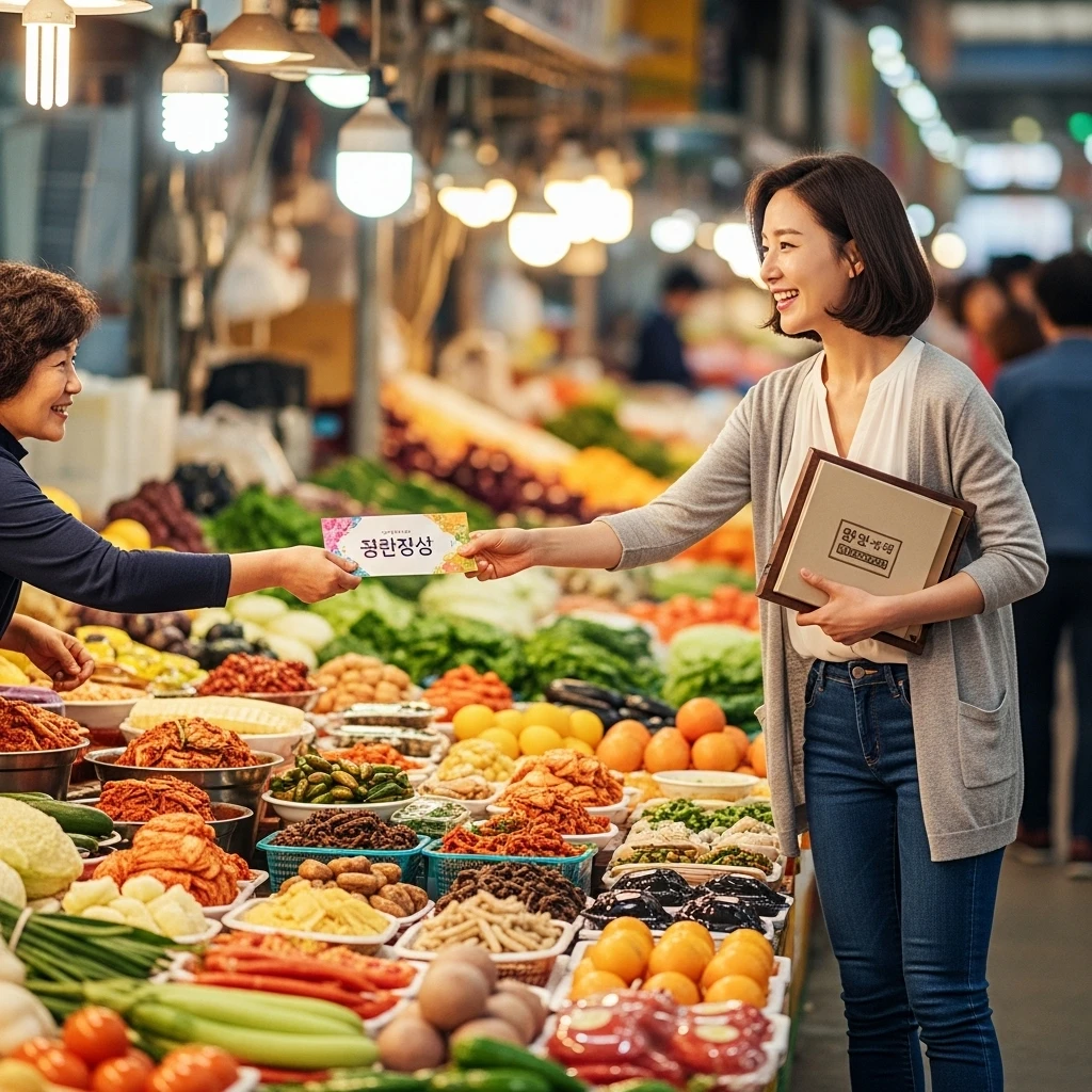 전통시장은 흥정 문화가 아직 살아있는 곳이라서, 상품권으로도 ‘덤’ 챙기기가 가능해요. 예를 들어 고구마 1kg 사면서 "온누리로 살게요~" 하면 하나 더 얹어주는 가게도 많답니다! 😄