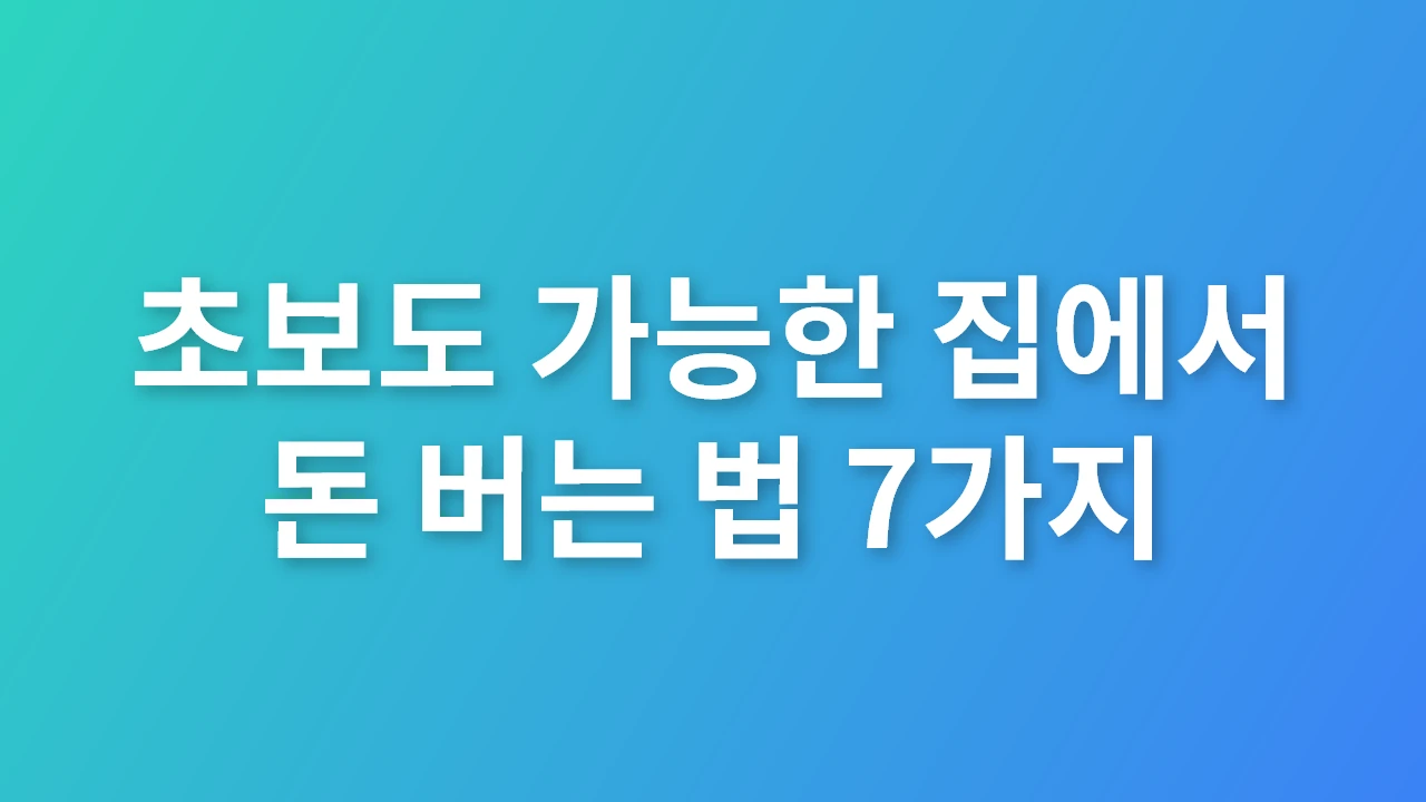 초보자가 집에서 돈 버는 법으로 가장 추천하는 방법은 무엇인가요?