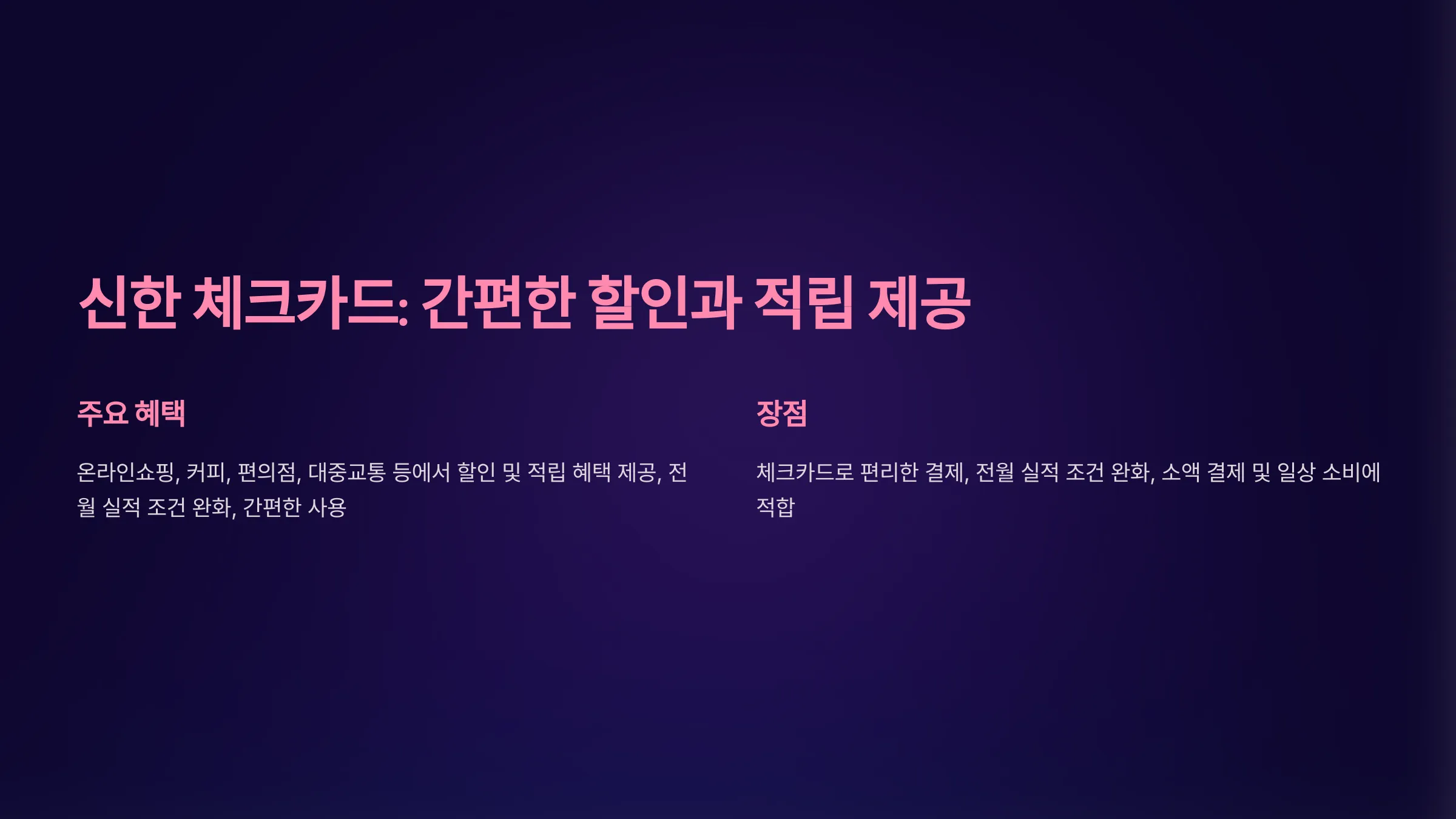 - 추천 카드: 신한 체크카드.